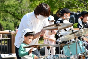 普段触れることが少ないドラムを誰でも自由に叩いてもらいたいと思って開催に至りました。市の公園緑地課と打ち合わせを重ね、2019年にスタートさせ毎年開催しています。ラジオや新聞社でも取り上げられました。障害をお持ちのお子様の親御様から「この子がこんなに楽しそうな表情をしている姿を初めて見ました。開催してくれてありがとうございます」と涙を浮かべられた時は開催して本当によかったと思いました。 | |
